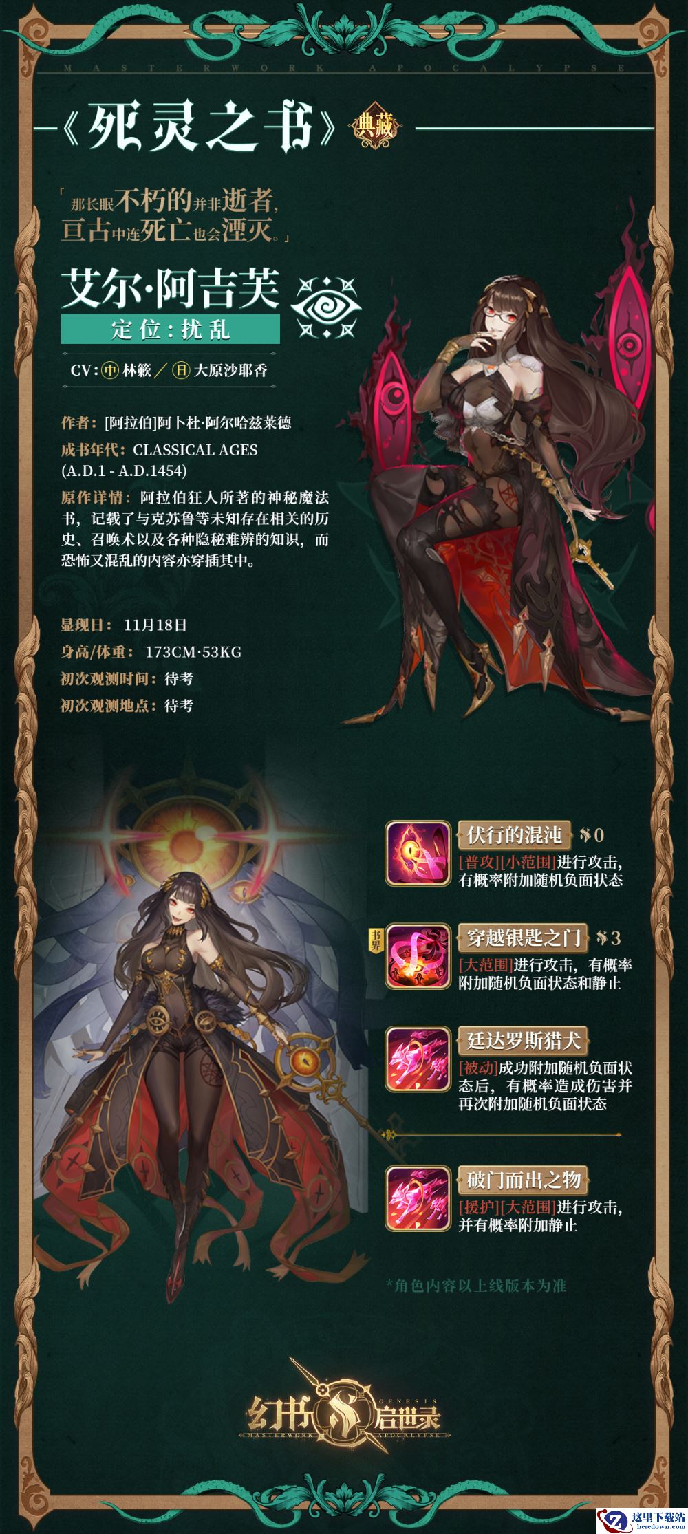 【于疯狂中起舞】召唤活动今日开启,全新【典藏】幻书《死灵之书》·艾尔·阿吉芙加入书馆,召唤概率提升!