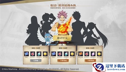 像《妖精的尾巴》中的最强小队一样,此次官网预约也为大家设置了召唤好友,集结最强小队活动。当你召唤自己的朋友一同预约时,随着招募好友的增多,获得的福利也更加豪华。不仅有钻石、高级召唤旗、金币、体力等重要道具,招募6名同伴更会有专属礼包相赠。
