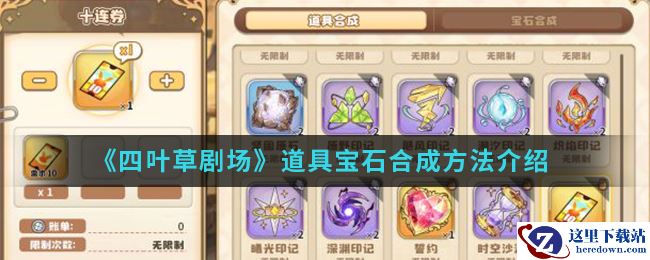 在四叶草剧场手游中道具宝石怎么合成呢?游戏中的道具和宝石分贝都可以进行合成,很多小伙伴不知道具体的合成方法,那么想知道道具宝石合成方法的就跟随小编一起来看看吧。
