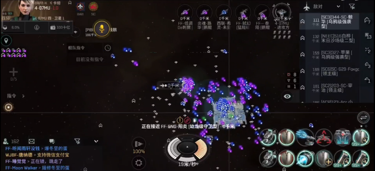 这场爆发于EVE手游中的“49会战”,双方使用的舰船,均为成编制的战列舰队,鲲鹏级为代表,在保证火力输出的同时,还能拥有不错的机动性,为双方的战术拉扯提供了空间。