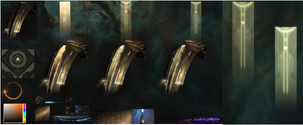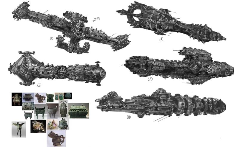 即使舰船的适用场景是在外太空、在未来,外国设计师对于中式物品依旧是传统的理解。经过沟通修改,形成了如下作品: