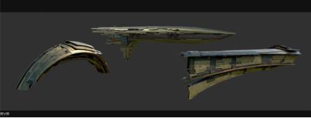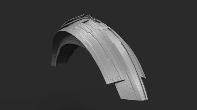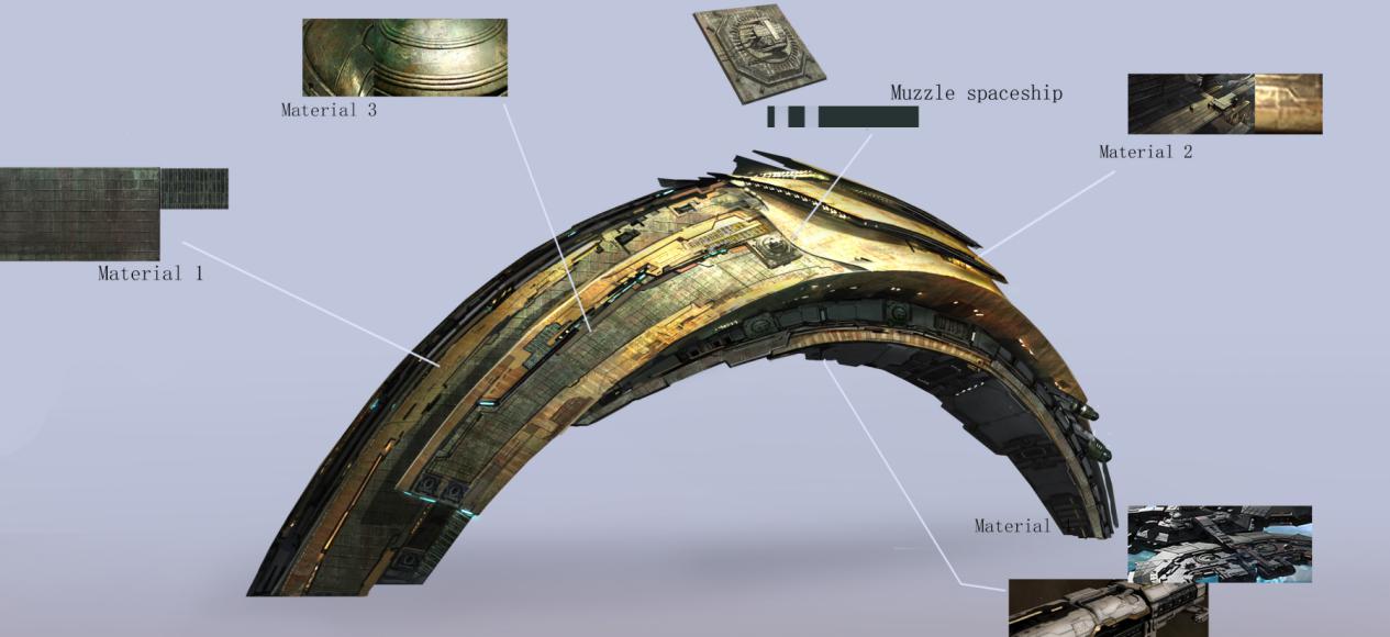 经过多个版本的迭代,得到了最终版本。船身轻盈具有速度感,既有月的意象也符合舰船的逻辑。