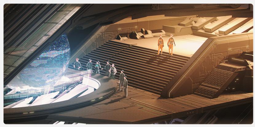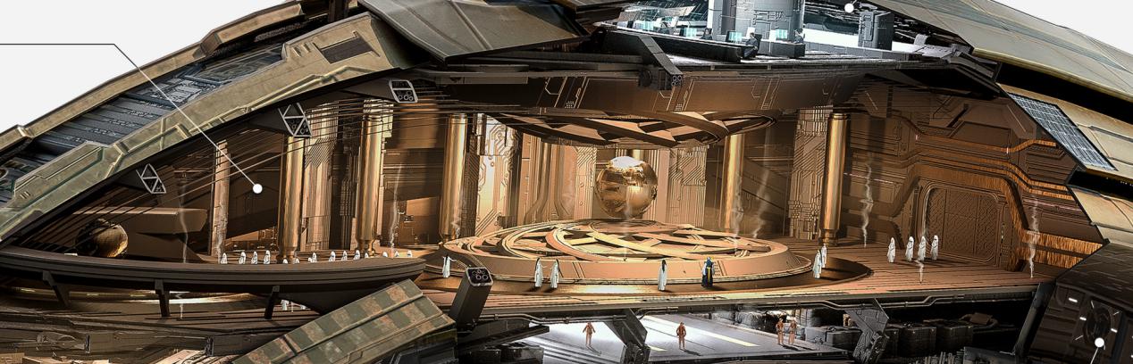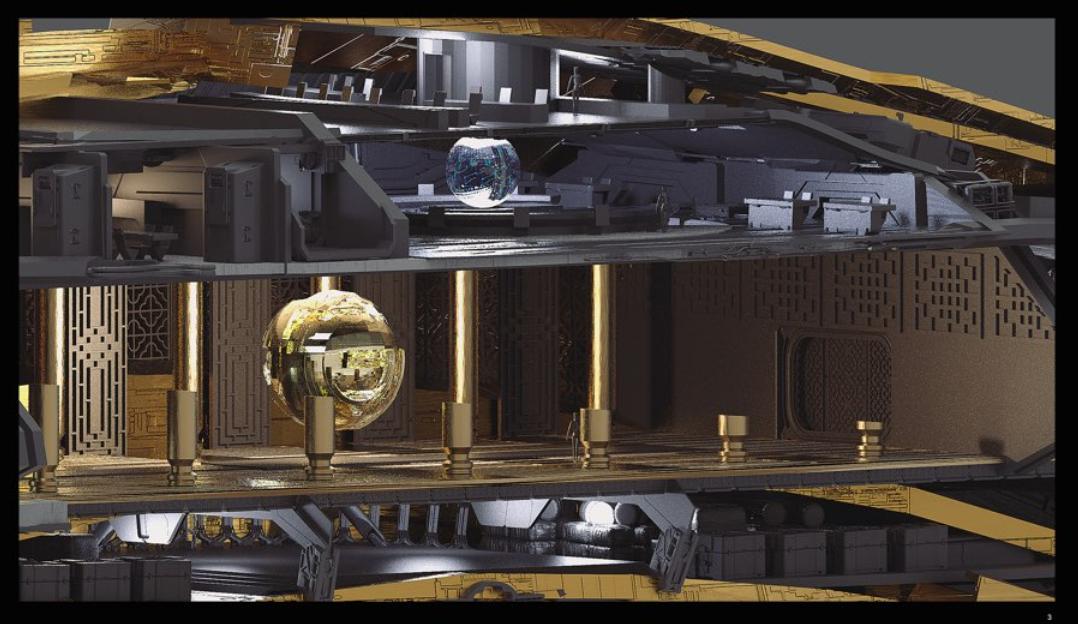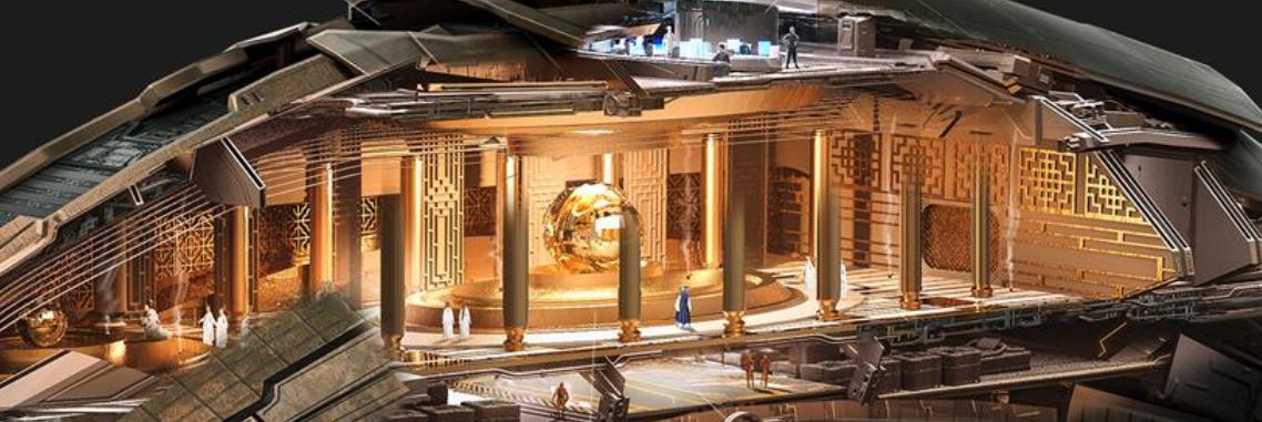 确定大致的功能分区之后,再开始设计室内装修。比如,下图为一位外国设计师对于东方势力舰船室内设计的想象: