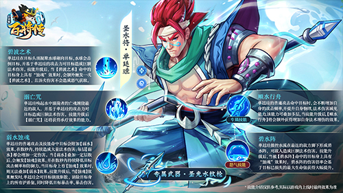 在单廷珪的技能设计时,我们着重考量了他作为“圣水将”应当具备的控水能力,也因此单廷珪在游戏中,是一位具备爆炸输出能力的水系法爷;同时也单廷珪也具备极强的破盾能力: