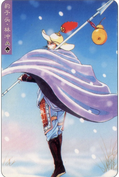 老版水浒卡中林冲的形象吸引了无数位卡友入坑:手握一杆花枪,立于漫天风雪中,一身战袍随风翻卷……八十万禁军教头被逼落草,林冲心中的酸甜苦辣,全凝聚在这转身远望之间了~