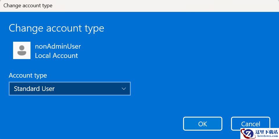 旧版“更改账户类型”对话框用户体验,适用于设备上的其他用户。