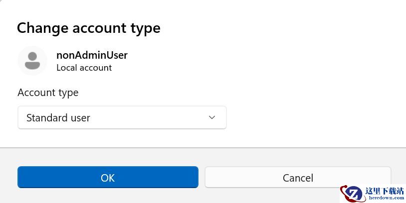 为设备上的其他用户提供全新的“更改账户类型”对话框用户体验。