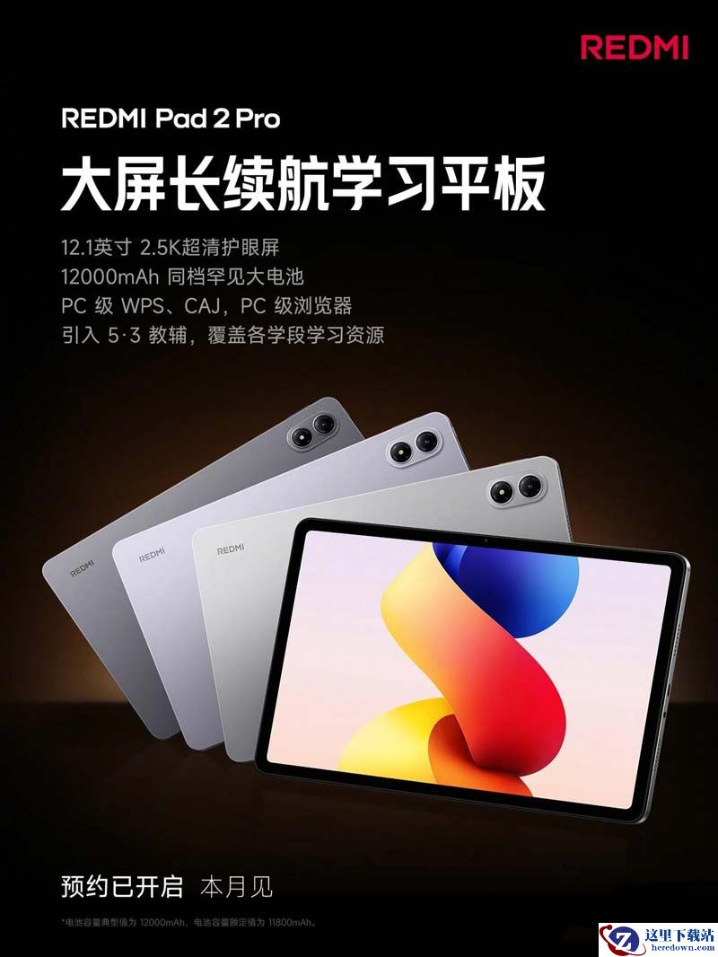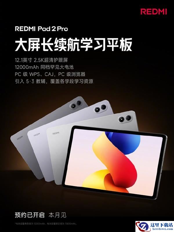今日,REDMI手机官微开始平板预热,称REDMI Pad 2 Pro专为学生设计,定位为一款大屏、长续航的学习平板。