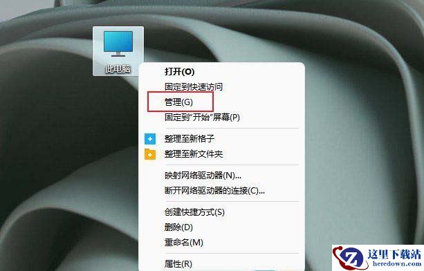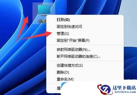 1、桌面右键点击【此电脑】,在打开的菜单项中,选择【管理】;