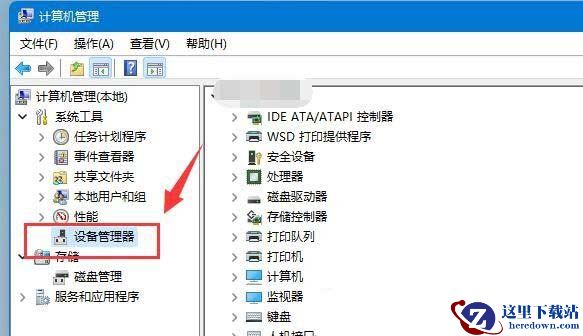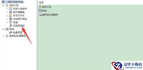 2、计算机管理窗口,左侧点击【设备管理器】;