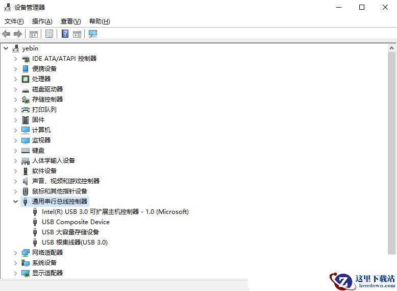 2、设备管理器窗口中,点击展开【通用串行总线控制器】;