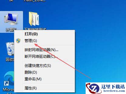 1、首先,右键点击桌面的“此电脑”图标,选择打开“管理”界面。