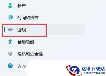 2、系统设置窗口,点击左侧栏的游戏;