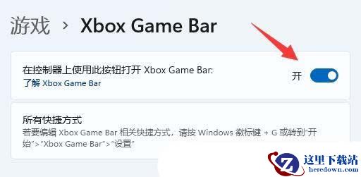 4、当前路径为:游戏 >Xbox Game Bar,将在控制器上使用此按钮打开Xbox Game Bar 开关打开;