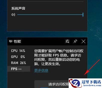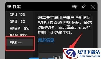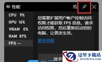 7、如果还没有获取FPS权限,那么点击FPS,再点击请求访问权限,最后重启电脑,就可以打开显示FPS了;