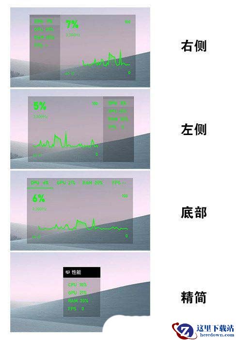除了默认样式外,Xbox Game Bar(游戏栏)还提供了其他几组外观。同时你也可以点击快捷按钮,隐藏曲线图
