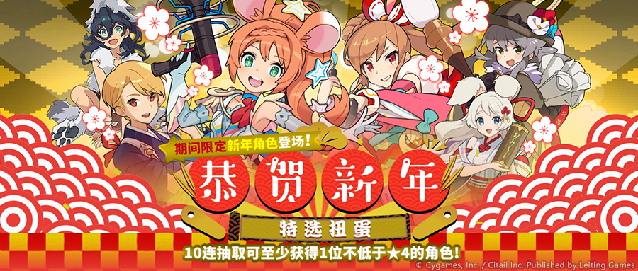 星见镇里的爆竹声渐响,冒险者的伙伴们也替上新衣庆贺新春!限定★5角色 戏水的毽子板少女「艾莉亚」、子国偶像「诺埃妮」与其他限定角色在「恭贺新年特选扭蛋」中限时登场!期待他们能够同冒险者您一起,在新的一年里继续充满乐趣的冒险旅程!