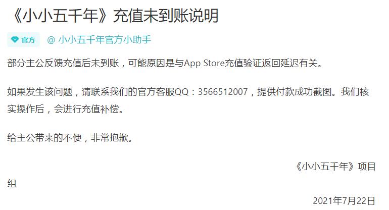 以上就是小编整理带来的《小小五千年》充值后未到账解决办法,大家还喜欢吗?更多精彩内容,请点击关注手游网,小编将持续为您更新!