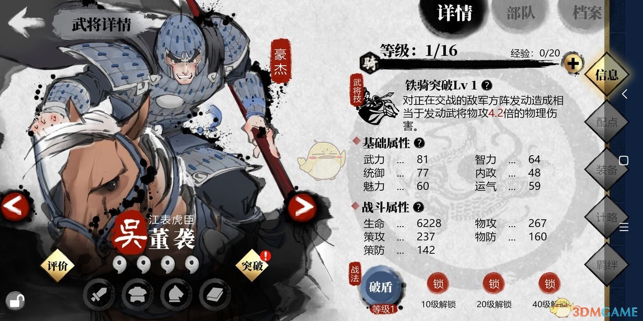 顾雍基础智力80+40(升星),孟达统御基础83,董袭81,很容易升星一下就出技能了,分在二队里可以玩死高战力的对方,然后主队搞掉一队,即使惨了也可以过关。