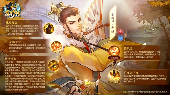 《小浣熊百将传》游戏中柴进是即将登场的梅花英雄,梁山排名第十,被誉为当世孟尝君。那么今天小编就给大家介绍一下小浣熊百将传柴进技能分析,有需要的小伙伴不要错过了。