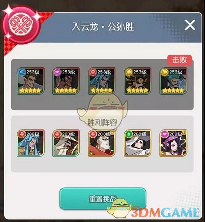 站位:随意(唿延灼要佩戴神器,不固定多试几个,会多次出现唿延灼差一点出大招而被公孙胜击杀的情况,多试几次就能过)。