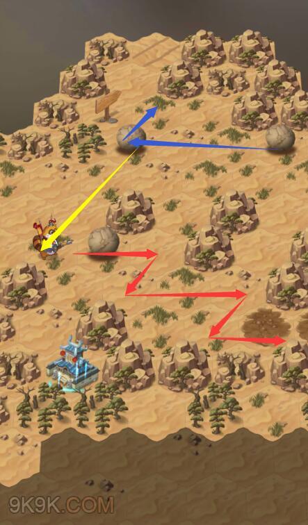 然后先把红黄路线走完,蓝圈石头最后推去堵牌子即可