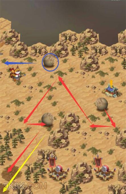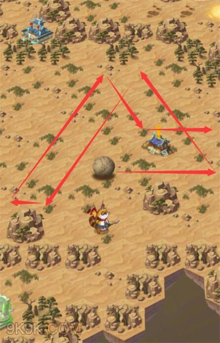 最后一个驿站三个石头推法,先按下图路线推