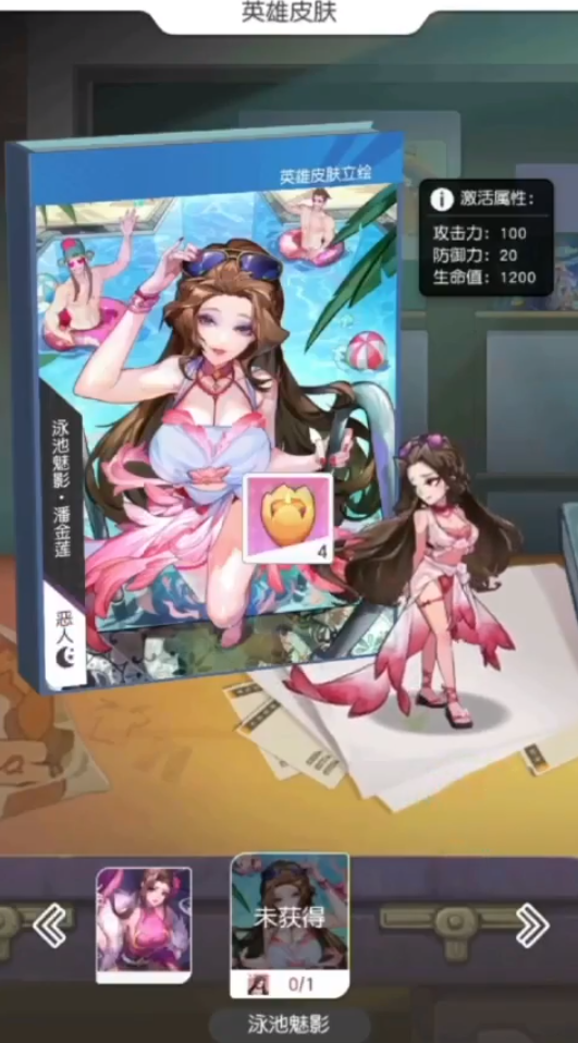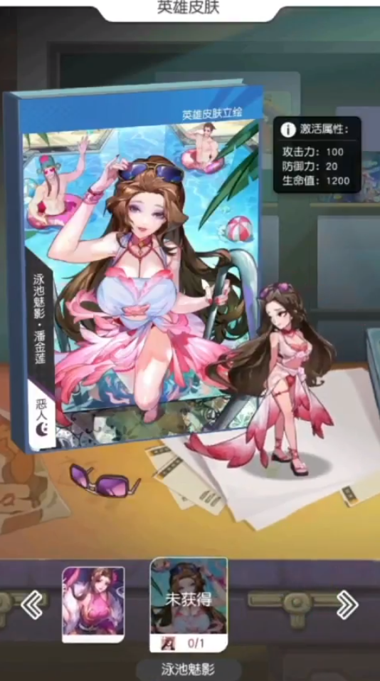 1、打开英雄页面,点击潘金莲,选择泳池魅影时装。