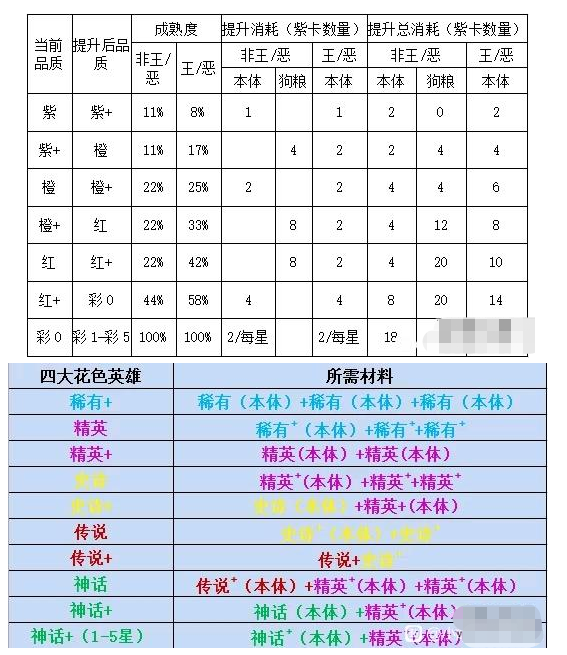 2、例如:稀有+英雄=稀有(本体)+稀有(本体)+稀有(本体),精英英雄=稀有(本体)+稀有+稀有。