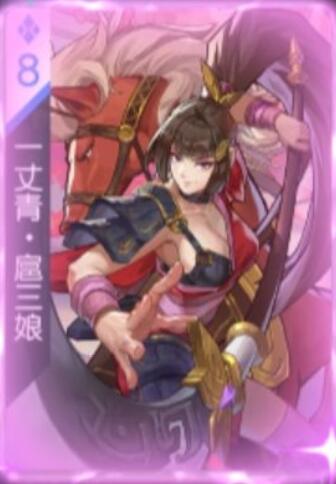 扈三娘是少数的几位女将之一,她的增益效果与冲锋技能可以有效的保护我方阵型,增加全体的攻击速度。