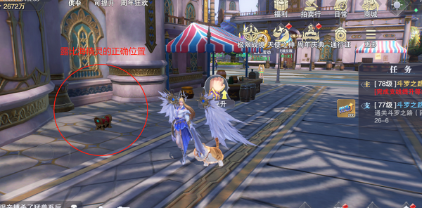 2.第二个彩蛋是先找到出生点后方的黑衣人进行对话,然后替他找到位于出生点左侧的海精灵,接着回去对话黑衣人后再来到下图中的正确位置找到露比海精灵,即可获得2张武魂觉醒券+100钻石的奖励。