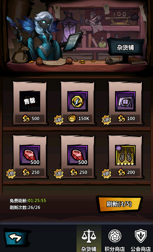 商店中的主要获取的材料跟英雄相关,都以英雄装备,英雄升星材料,获取英雄材料有关。商店中还分有积分商店,该商店主要跟竞技场有关,获取的道具主要为英雄,公会商店所消耗的道具为公会币,公会主要以兑换获取英雄道具为主。