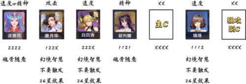 1、具体配置如图所示,详细的低配阵容搭配如下:波赛西+唐月华+白沉香+胡列娜+绛珠。