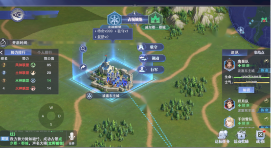 行军:部队行军至目标城池停留,该指令可以向己方所占领城池或者中立城池发起。
