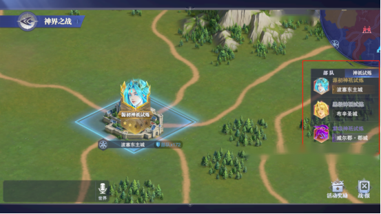在开始进行攻城时,我们需要了解一个重要的机制——神位克制,在成神之路上我们可以在四个神位中选择一个神位,而这个机制在大陆征伐中也是至关重要的,相互克制可以对进攻或防守有更好的选择性,进攻的时候可以参考神位克制来选择性进攻城池。