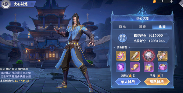 2.接着第二个玩法依然是每天可以组队进行挑战的决心试炼,这个活动每天花费140点体力可以获得一张门票,每天最多可以获得6张门票,也就是需要至少花费840点体力才能获得上限的6张门票,这里和过去的某些活动每天可以挑战9次的规则略有不同,大家还是需要注意一下。