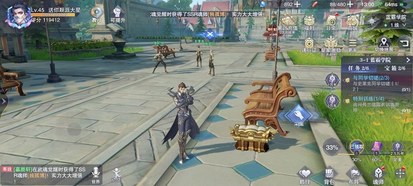 第三个【宝箱】还是在这堆【NPC旁边的长椅处】。