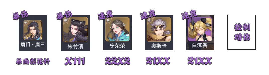 此阵容的核心为朱竹青和唐门唐三,对比目前最强的短图组合邪月+唐昊来说,获取难度可谓是几何级降低