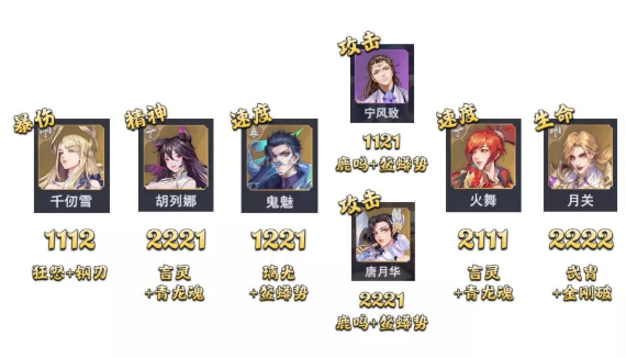 宁风致锁定1技能给千仞雪,唐月华则按照过去的标准操作即可,快速积累满30层【甄】状态便锁定4技能即可,当然这里针对唐月华的1技能选择,如果练度高不会掉血的话就带【宛曲】推条,练度不够的话则带【余音】补血