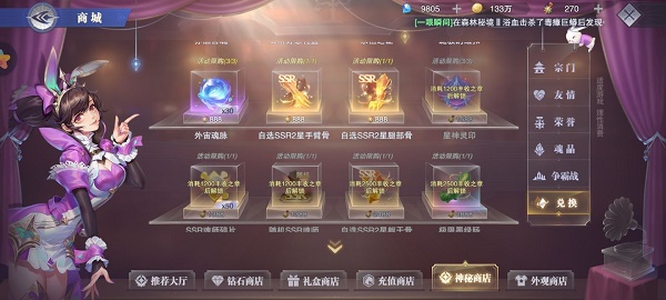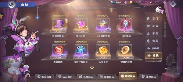 1、商城给玩家带来了武魂觉醒券、誓约之证、5万年仙草礼盒、四阶随机药草、拟态魂环、赤金兽魂。