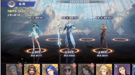 既然是速度为先,那么就不用带许多人了,回合数自然也是越少越好,这边我们选择的阵容是:宁荣荣、剑尘心、奥斯卡。