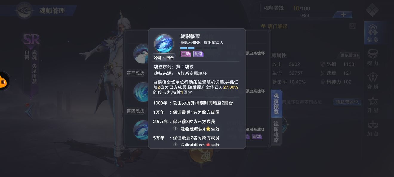 白鹤作为偏辅助的敏攻系,他的作用就是乱速,克制先手阵容魂师。