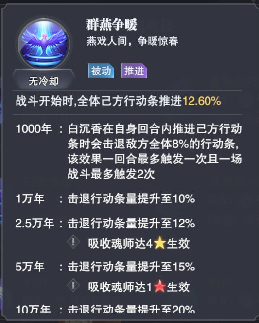 ① 白沉香必须带植物系第二魂环,才能保证是己方先出手,然后下一个出手的一定要是拉条魂师,才能保证全队进行魂技的释放,而不会被超车。