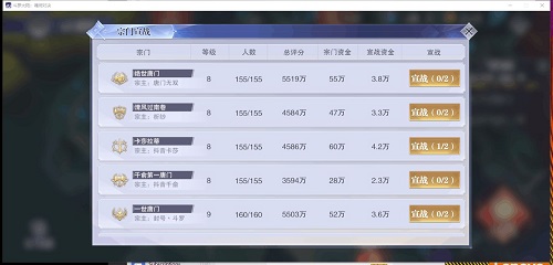 活动分为两部分,第一部分早晨8点到下午6点的宣战,这里小编推荐如果你的宗门实力够,那就直接宣战资金最多的宗门,这样能那更多的资源,如果战力差不多就得酌情考虑了。