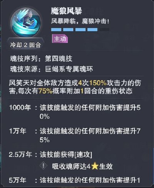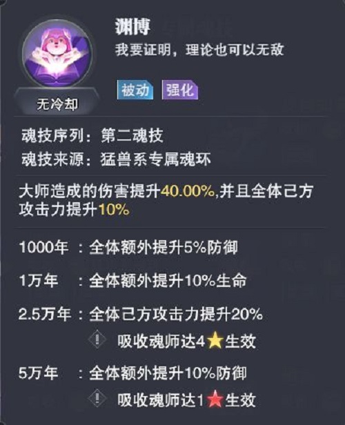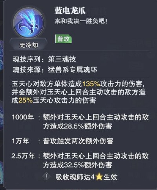 二技能是带勐兽二,这是他打活动副本的最好用的地方,伤害大幅度提升,外加增加速度,可以直接第一个出手。