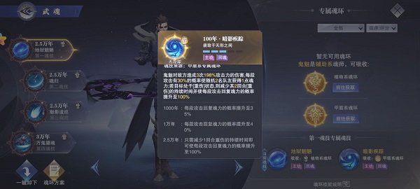 然后是第三魂技魅影很简单的效果,普通攻击一次,然后加速自己的行动条移动,注意这里不是加速,只是行动条动了。速度内有任何变化。厉鬼追命有一定的基础概率给地方重伤效果。