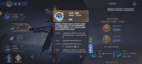 第二魂技却邪,看着很复杂,实际上就两个效果,一个是比较鬼魅自身本回合的血量与上回合的血量,选择更高的进行保留,然后如果鬼魅成为单体技能,注意是单体技能,比如柳二龙的那种,那个叫单体技能。免伤百分之五十并且有概率抵消这个技能所带来的负面效果,例如破甲眩晕虚弱,中毒,这些负面效果都算。
