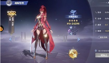2、火舞加点推荐:主点精神,副点攻击、速度,以加点10点为例,3点攻击、3点速度、4点精神。