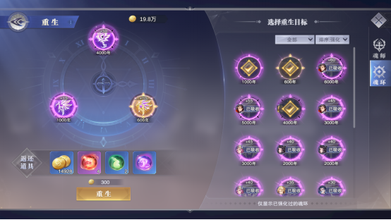 值得一提的是,除了魂师能够进行重生,经过强化的魂环也可进行重生,返还相应的强化素材。