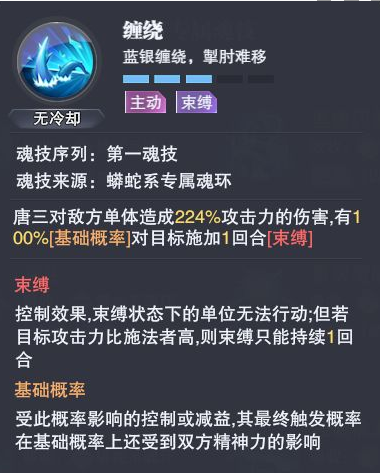 并将有概率对所有魂师产生【束缚】效果!是绝佳的强力控制魂技。